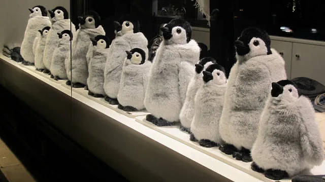 | Pingviner er årets store hit blant vindusdekoratørene. |