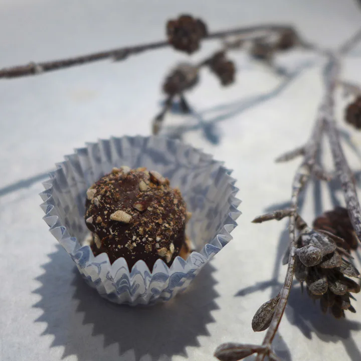 Hver jul må jeg lage litt konfekt. Hva det blir varierer fra år til år. Sist helg var jeg i Paris og besøkte bl.a den herlige matbutikken Le grand epicerie Bon Marche, som er et must hver gang jeg er i byen. Butikken er bygget om og inneholder nå fire etasjer med mat, drikke, restaurant og kjøkkenutstyr. Et paradis for matnerder som meg. Jeg kjøpte med kvalitetssjokolade fra Valrhona hjem for å bruke i julekonfekten. Du får kjøpt Valrhonasjokolade i Norge også. Det trenger ikke være dette merket, men når du skal lage egen konfekt, sørg for å bruke sjokolade som er av litt bedre kvalitet enn den klassiske kokesjokoladen. Dette skal være små luksusbiter som du kan gi bort i gave eller by gjestene dine på. Så ikke spar på konfekten, for å si det sånn. (Tok du den?)