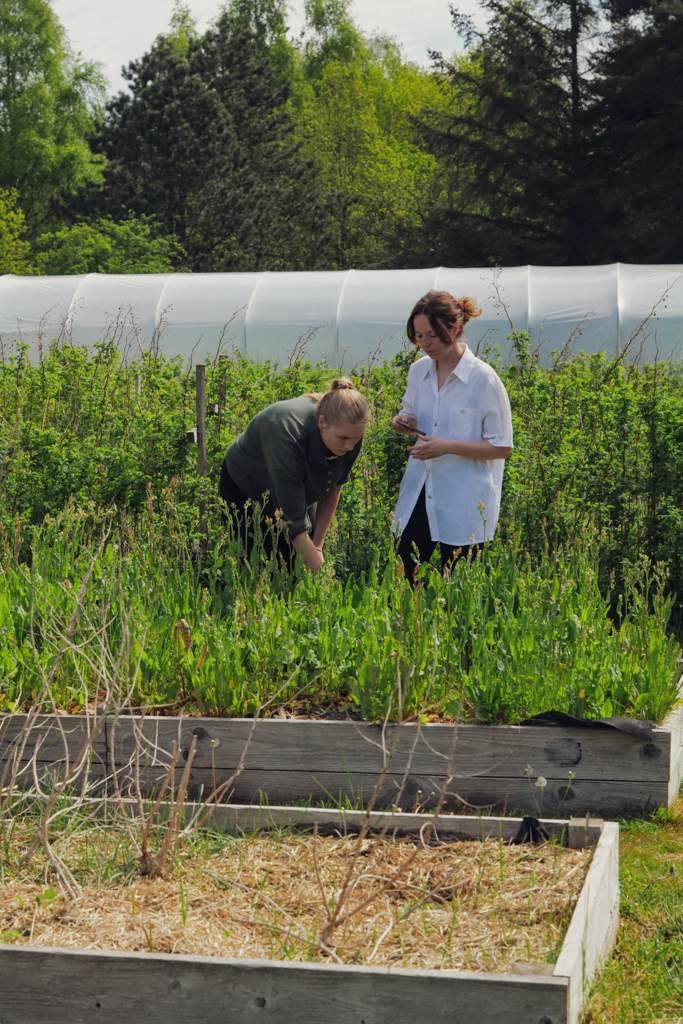 Vi får en omvisning i de fire hagene til Kadeau som restauranten har hatt i 12 år. Her dyrkes grønnsaker, frukt og urter som skal på tallerken på Michelinrestaurantene her og i København.