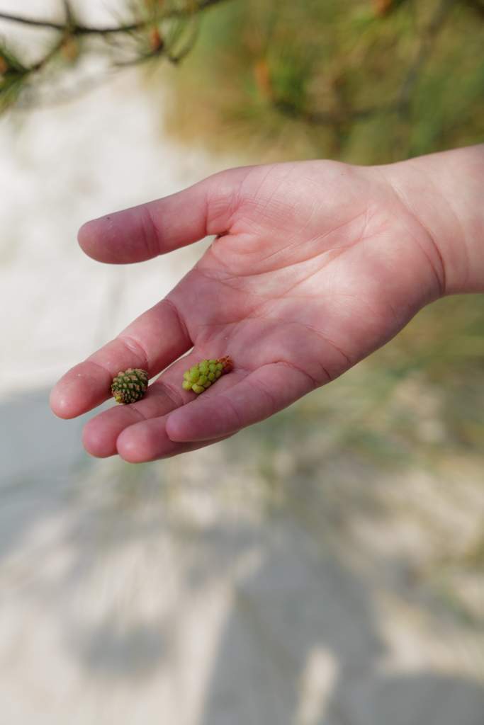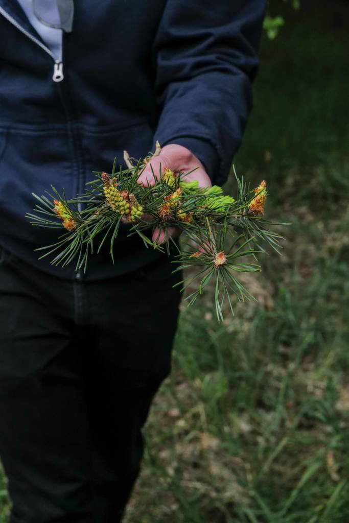 – Furuen er perfekt nå for man kan bruke både konglene og blomsten, forteller Laura. Blomsten har små korn som popper i munnen mens de små konglene gjerne legges på sirup.