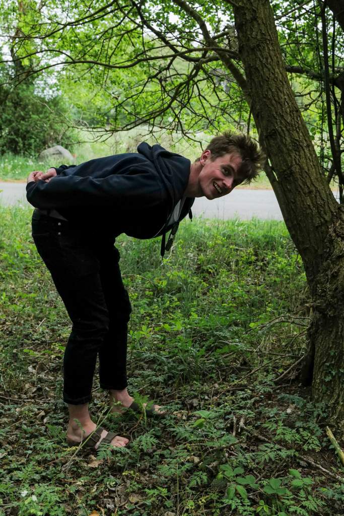 Kevin løper mot et tre og bøyer seg ned. – Her er de!