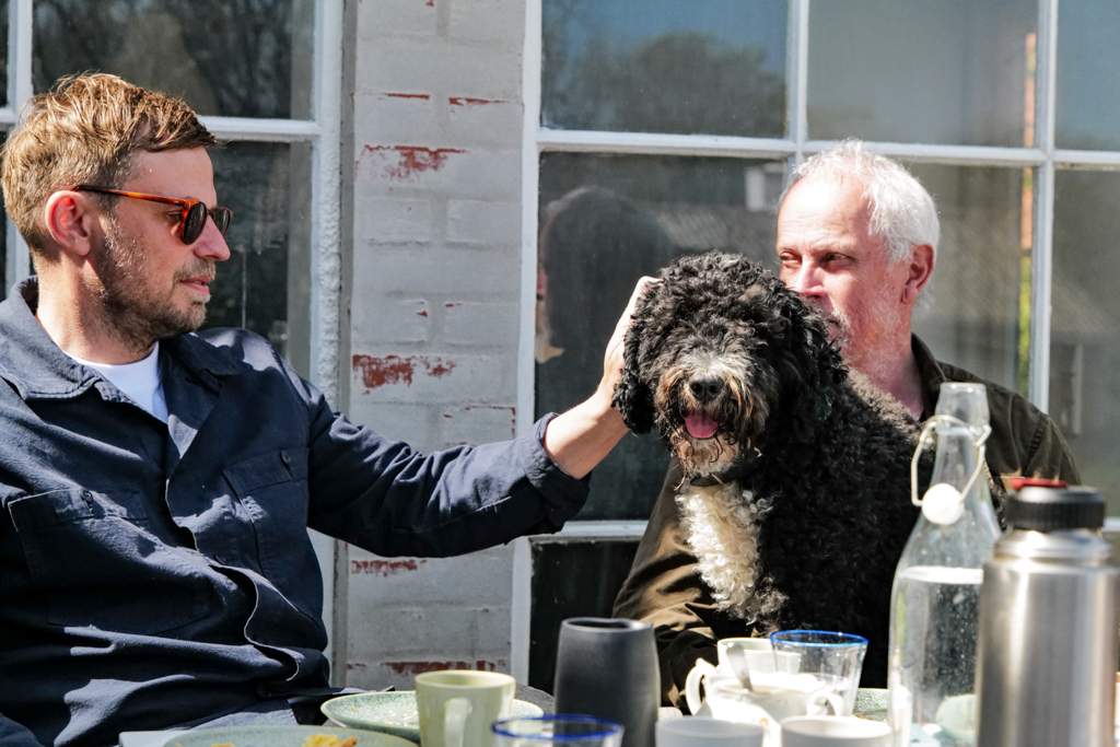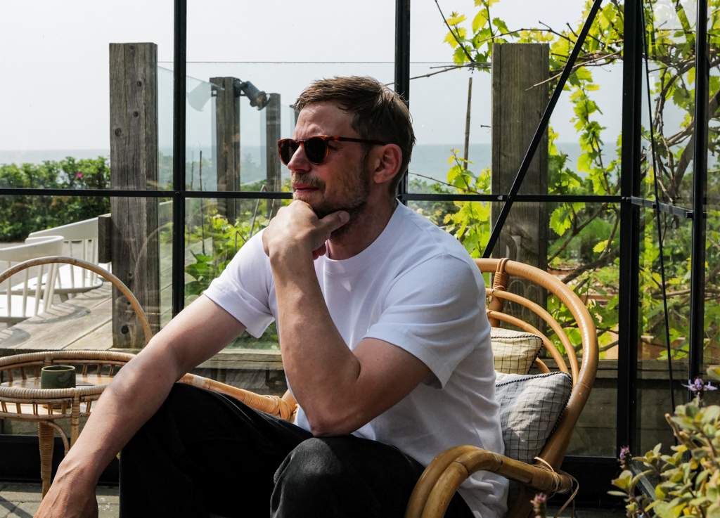 Nicolai sitter inne i det koselige drivhuset som fungerer som en utendørsstue. Forberedelsene til kveldens servering er i gang. Kokken sitter å drikker av en kaffekopp han selv har tegnet.