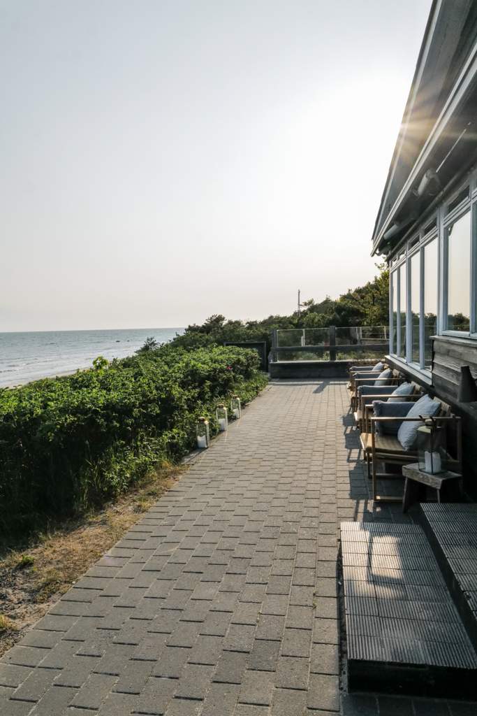 Vi kjører til Kadeau. Det brunmalte huset med store panoramavinduer ligger på toppen av strandbakkene ved Sømarken strand.