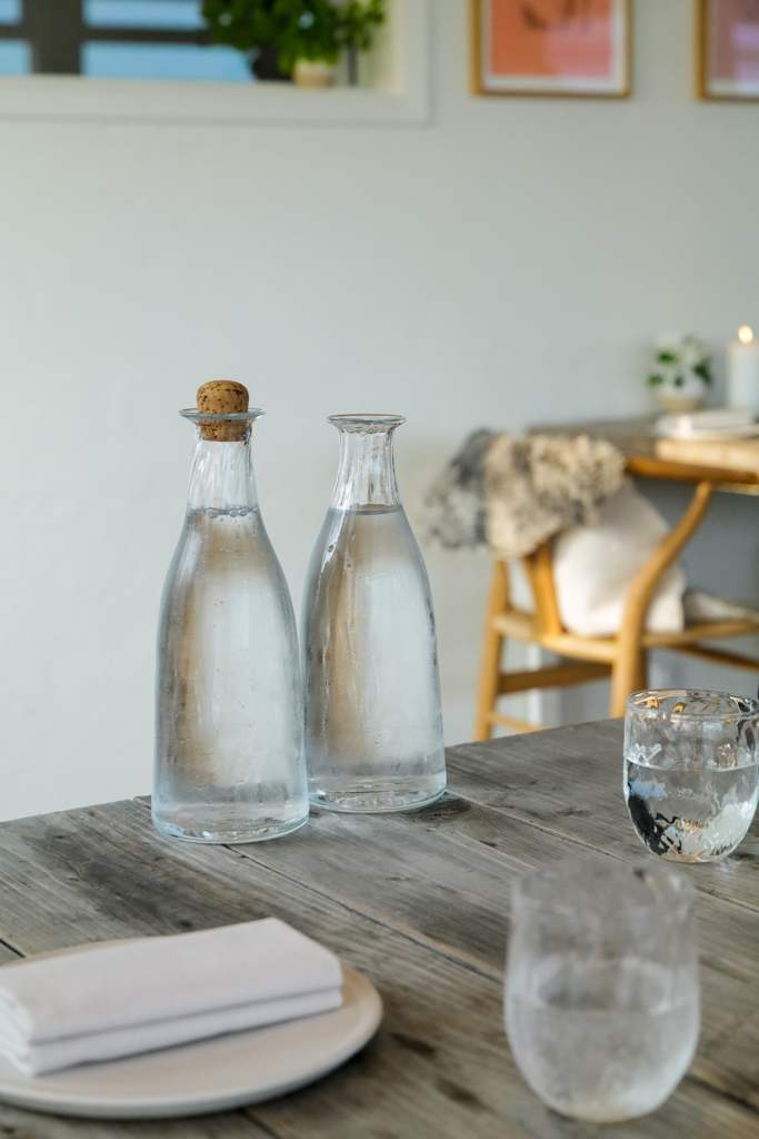 Vannglassene “Herringbone” kommer fra Baltic Sea Glass – munnblåst på Bornholm. Bestikket er fra blant annet Georg Jensen.