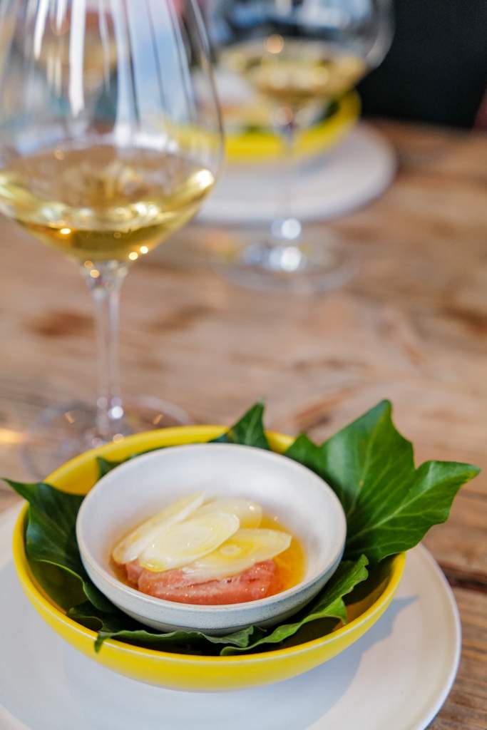 Med to restauranter og derfor også forskjellig publikum, vet Nicolai at det kan være enkelte retter som passer bedre i København enn på Bornholm og omvendt. Det er gjerne en ingrediens som skiller rettene, men de vil fremdeles ha samme base og DNA. Vi vil gi folk smaken av Bornholm enten de befinner seg på øya eller i København. En ingrediens vi bruker mye og som symbolisere hvem vi er, er valnøttblad. Vi lager blant annet olje og vi sylter det.