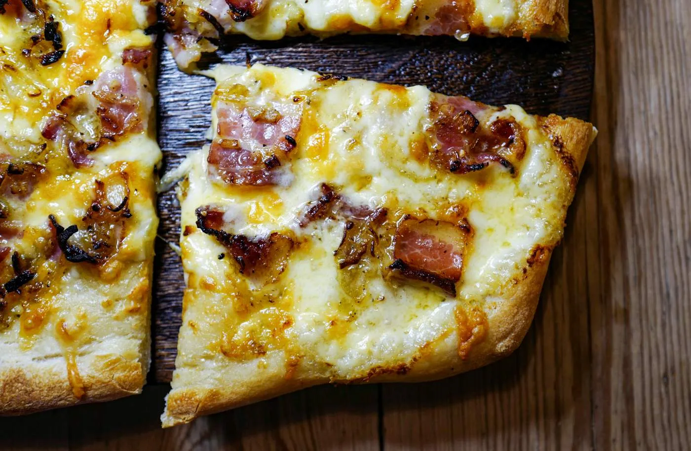 - Smør på ca en halv boks Rørosrømme. Strø ost over og blandingen med løk, hvitløk og bacon. Stek midt i ovnen på høy varme til den er gyllen og bunnen sprø. Skjær i firkanter og server.