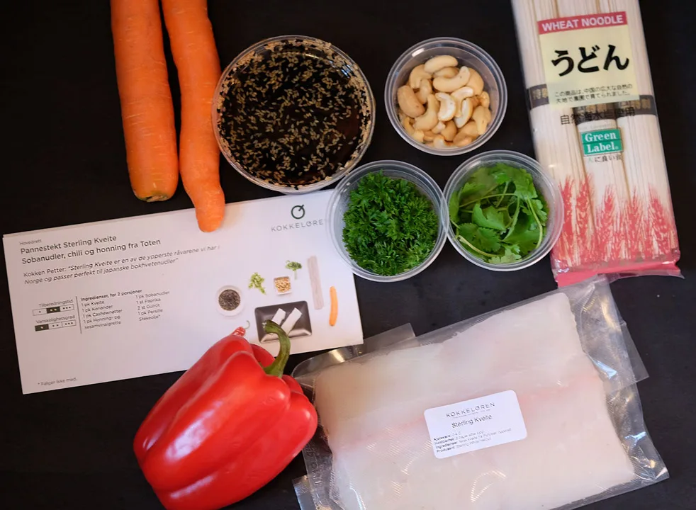 Retten er lett å forberede, men vi ser allerede fra starten av at det kommer til å bli en gigantisk rett. En pakke sobanudler til to personer er ekstremt mye mat. Jeg vil anbefale deg å bruke halvparten av pakken. (Til info: Etter tilbakemeldinger på mengden nudler skal Kokkeløren nå se på dette og gjøre justeringer i retten.) Når det er sagt, så er dette en av bestselgerene til Kokkeløren denne høsten. Etterspørselen etter asiatisk mat har vært stor, og det er derfor kokkene hos Kokkeløren har laget retten på denne måten. Honning- og sesamvinaigretten, som blandes i grønnsaker og nudler rett før servering, smaker nydelig og den stekte Sterlingkveita er selve «rosinen i pølsen». Jeg synes nesten det blir for råflott med den fantastiske fisken til en nudel-rett, hvis jeg skal være helt ærlig, men kundene vil ha asiatisk mat, og da får de det jaggu servert med de flotteste råvarer. Sobanudler er laget av bokhvete (som er en nøtt) og er et fint alternativ til de som vil kutte ned på karbohydratene.