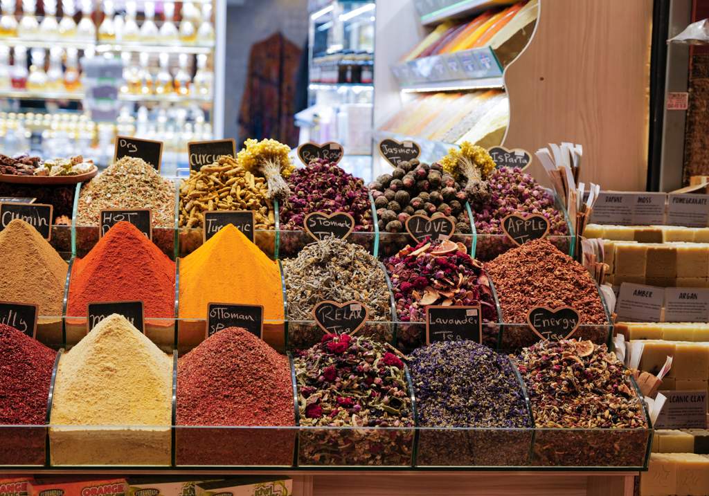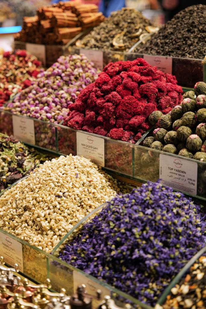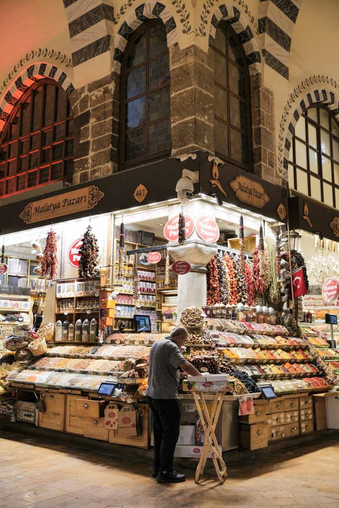 Denne gamle og flotte bygningen huser mange butikker der det blant annet selges krydder, tørkede frukter, nøtter, te, nykvernet kaffe og Turkish Delight. Prisene her er lavere enn i Grand Bazaar og de er også satt, så her pruter man ikke. Det er ganske deilig å slippe det. Dessuten kan det være lurt å sjekke prisene her før man drar til Grand Bazaar, så vet man hva ting skal koste før man pruter, for der gjør man nemlig det.