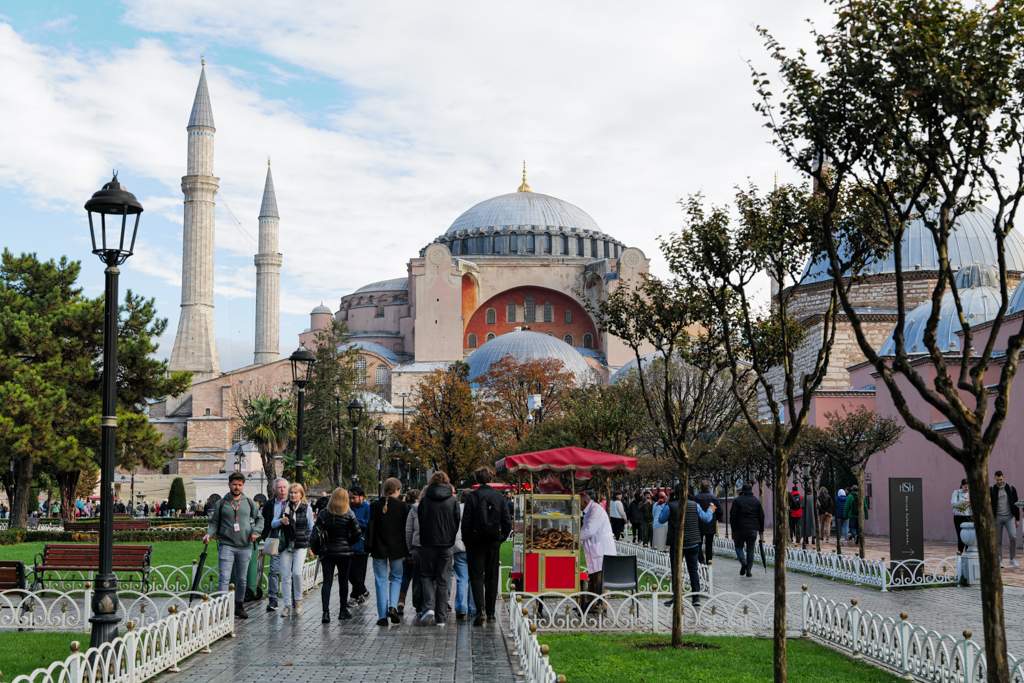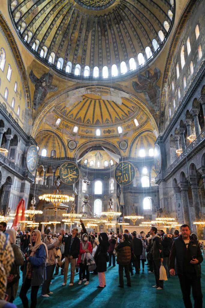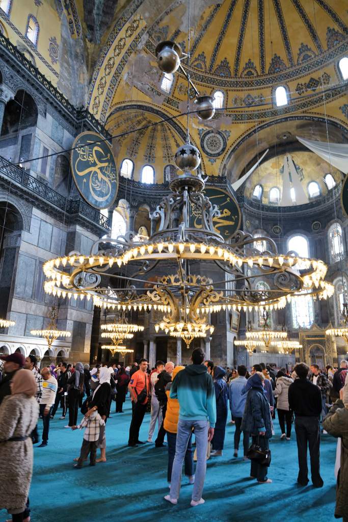 Du kan selvsagt ta en tur innom den vakre blå moské. Den har jeg vært i tidligere. Denne gang besøkte jeg Hagia Sophia, en helt eksepsjonell moské med både muslimske og kristne symboler. Den ble reist som kirke i perioden 532–537 under den romerske keiseren Justinian, og så ble den etter 900 år ombygd til moské da tyrkerne erobret den kristne byen i 1453. Etter å ha fungert som museum i mange år ble den igjen brukt som moské i 2020. Den er åpen for alle utenfor bønnetid så fremt du tar av deg skoene før du går inn samt dekker til hodet hvis du er kvinne. Ta med et skjerf i vesken, så er du klar.