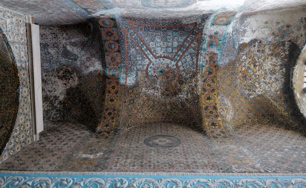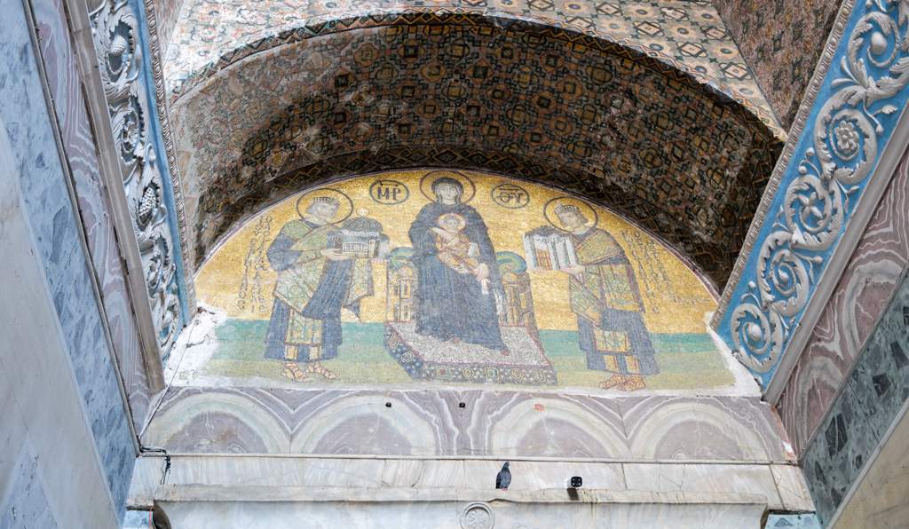 Det finnes en stor mosaikk av Jomfru Maria i taket. Den dekkes til med gardiner under bønn, da dette nå er en moské og ikke en kirke. Også i utgangspartiet kan man se kristen mosaikk i taket.