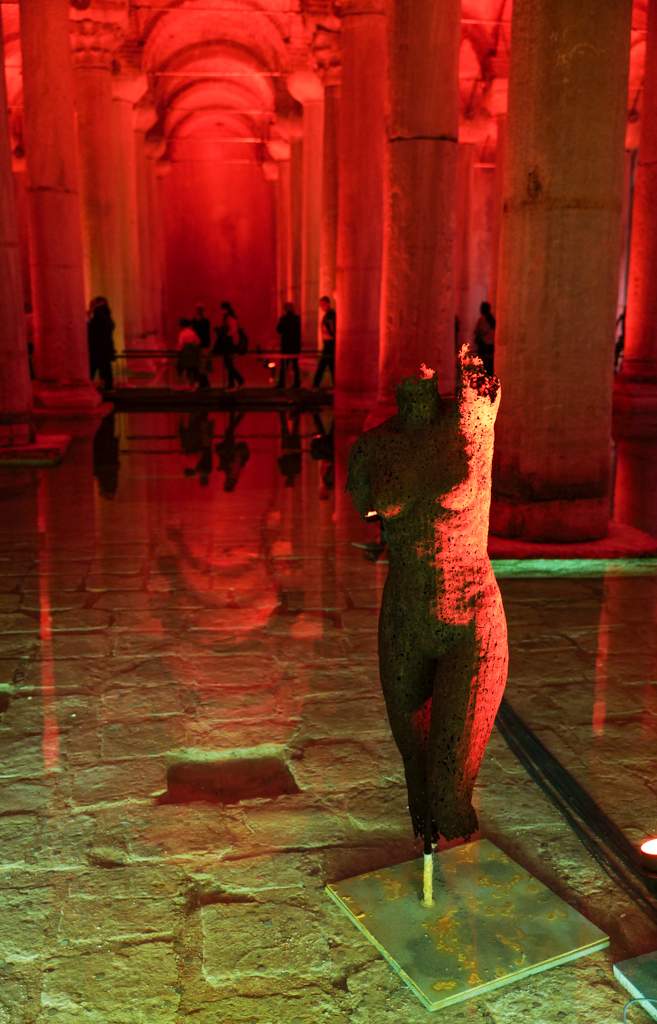 De moderne kunstverkene som er plassert mellom søylene i sisterene er virkelig et must å få med seg når man besøker Istanbul. Lyssettingen gjør kunstverkene levende og mystiske.