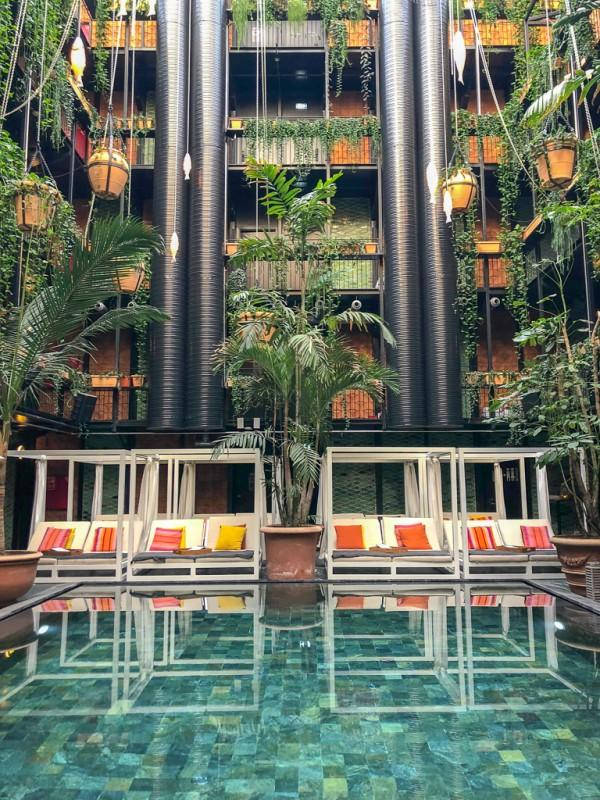 Denne gangen, som sist gang jeg var i København bodde vi på Manon les Suites – Guldsmedens nye hotell i København. Jeg mener, det er stedet å bo altså! Fy søren for et herlig sted. Det ser ut som en oase – og er det også. Et stort og deilig, innendørs svømmebasseng er hjertet av hele hotellet. På taket er det dampbad og badstue samt mulighet for å sole seg, når snøen forsvinner vel og merke. Første fredag i måneden har de også kjempeparty rundt poolen.