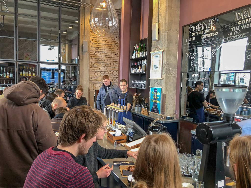 En annen vinbar er Ved Stranden 10. Fantastisk hyggelig sted med et fint utvalg vin på glass. Du kan kjøpe med flasker hjem. De serverer også mat. Problemet er at baren er litt ødelagt av for mange nordmenn. Ja, det er andre nordmenn i København. Det er jeg fullstendig klar over. Problemet slik jeg ser det er at det kommer mange innom som ikke skjønne verdien av en god vinbar og god service og skal bare ha et glass vin uten å høre på ekspertisen og stole på anbefalinger fra skikkelige fagfolk. Av og til er det en meget god idé, nemlig.