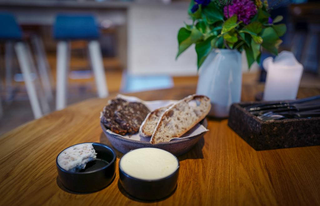 Vi gikk for et par deilig retter hver med øl og vin til hver rett. Det hele startet med saltbrød med ullgris. Å, jøje meg, så godt!