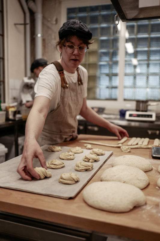 – Vi bruker smør i baksten for å gi god smak, men vi velger å ikke servere smør i restauranten. Vi serverer heller veganske pålegg som hummus. Dette gjør vi bevisst, sier Anna før hun setter et brett med nyformede boller i fryseren. – De steker vi etter behov, så blir det ikke svinn, forteller Anna.