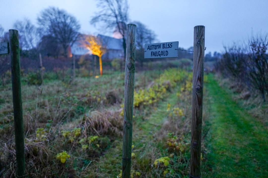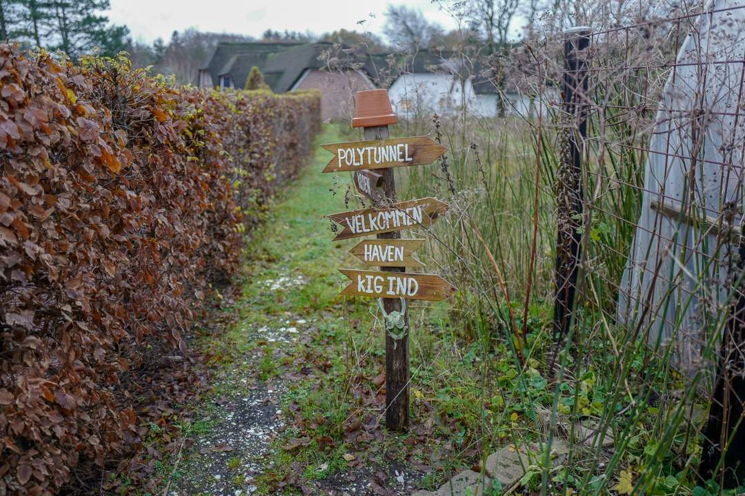 Mange av råvarene som brukes i restauranten dyrkes i hagen. En liten spasertur rundt på området avslører også et par bikuber. En med et britisk flagg og et med dansk flagg.