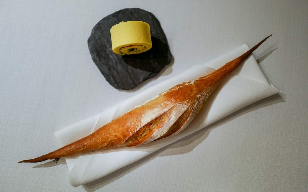 Brødserveringen som nå kommer inn på bordet må jeg bruker litt tid på å fortelle om. Vanligvis er brød brød og ikke så mye å skrive hjem om. Brød kan man spise hjemme og ikke fylle seg opp med på fin restaurant, er det jeg som oftest tenker. Men i dette tilfelle spiser du brødet.