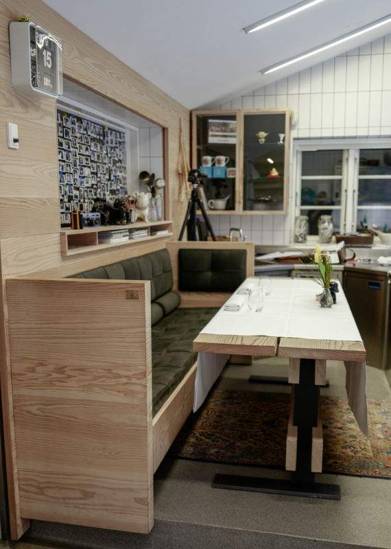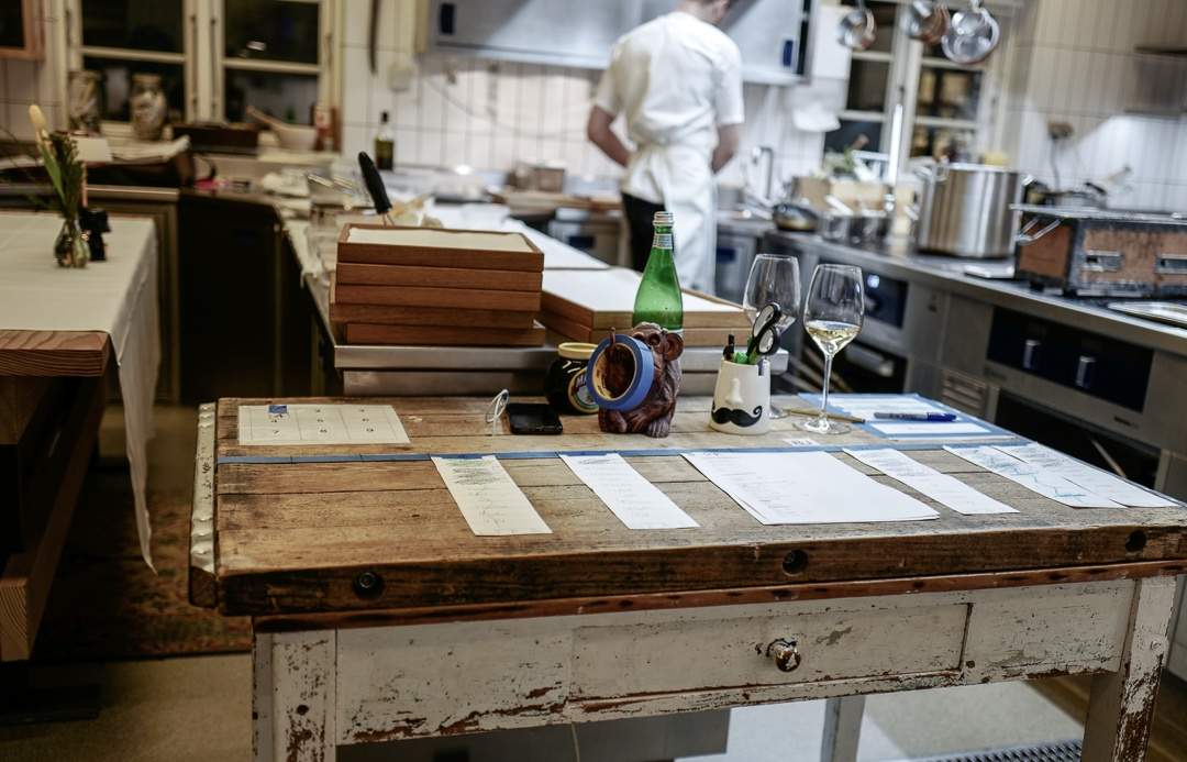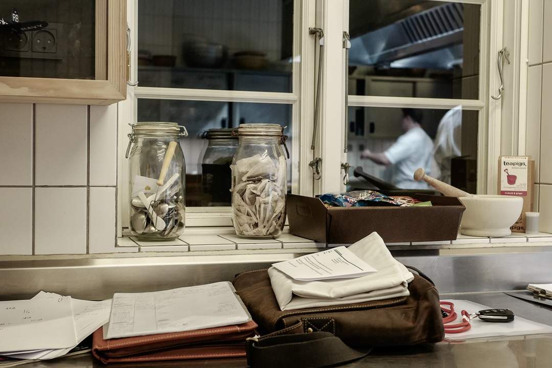 Erik og jeg blir plassert inne i delen av restauranten som ligger nærmest kjøkkenet. Foruten selve spisesalen (som heller ikke er stor), finnes det altså noen bord her ved kjøkkenet, men også et bord inne på kjøkkenet som er forbeholdt Pauls nære venner og bekjente.