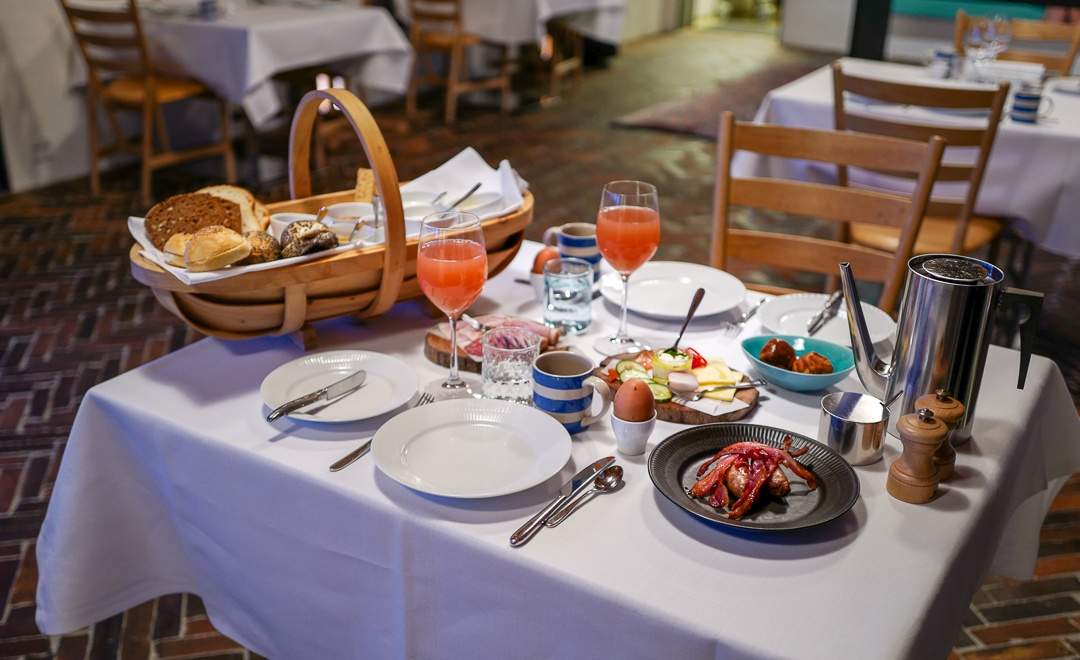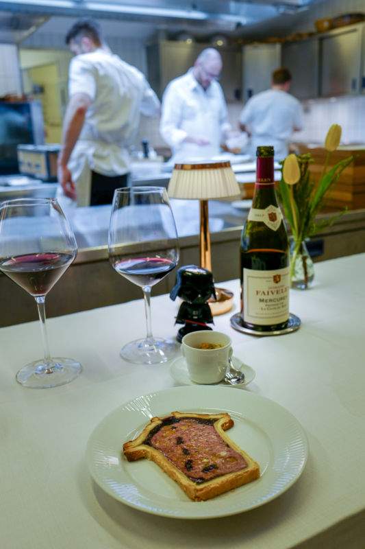 Erik har vært på Henne Kirkeby Kro tidligere og vips havner vi på det eksklusive bordet litt ut i måltidet. For en ære!