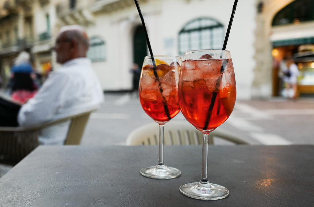 Caffé Cordina, lenger ned i hovedgaten lager også deilige Spritz, og der betaler du 5,5 euro for en Spritz. Caffé Cordina er en av Vallettas mest ikoniske steder, så en tur innom her er et must enten for Spritz eller et kakestykke.