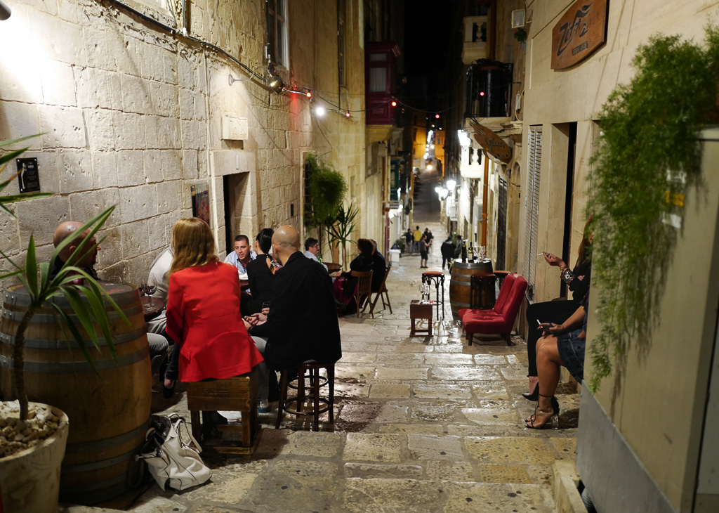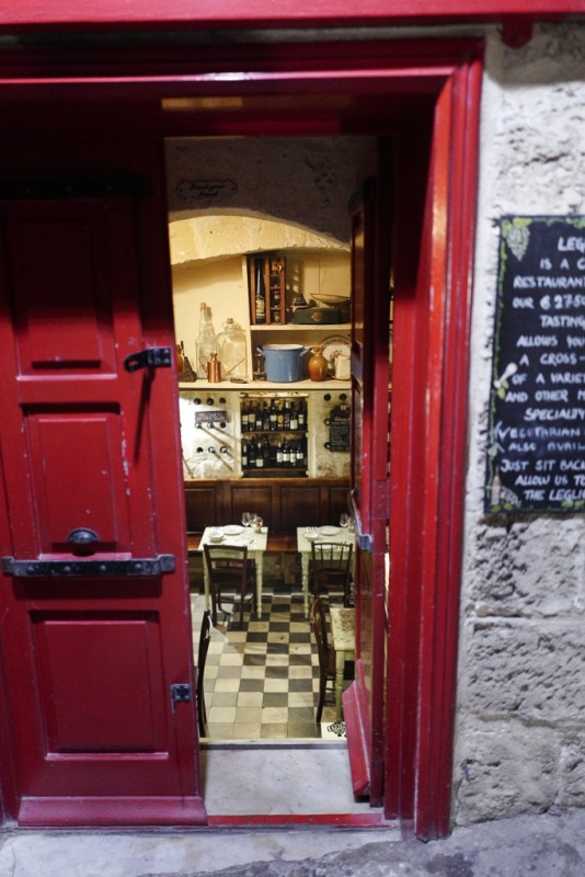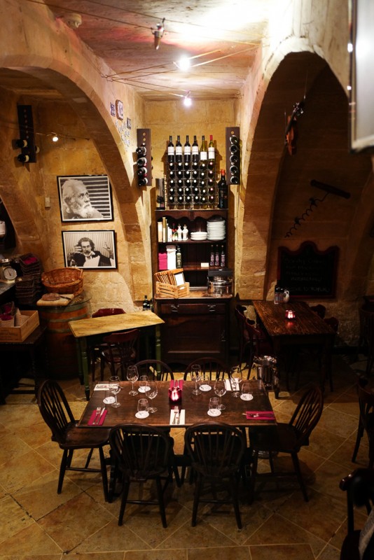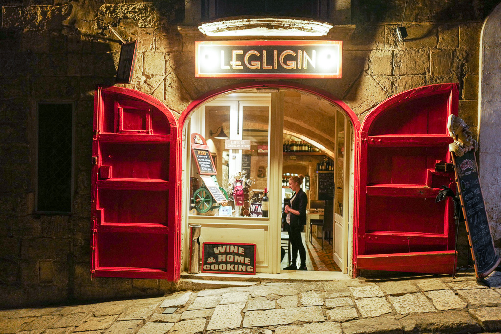 Legligin Wine Bar er et utrolig hyggelig spisested. Dette kan du merke deg først som sist. Mange av Vallettas restauranter ligger nede i steinkjellere. Deilig svalt om sommeren og koselig på vinteren.