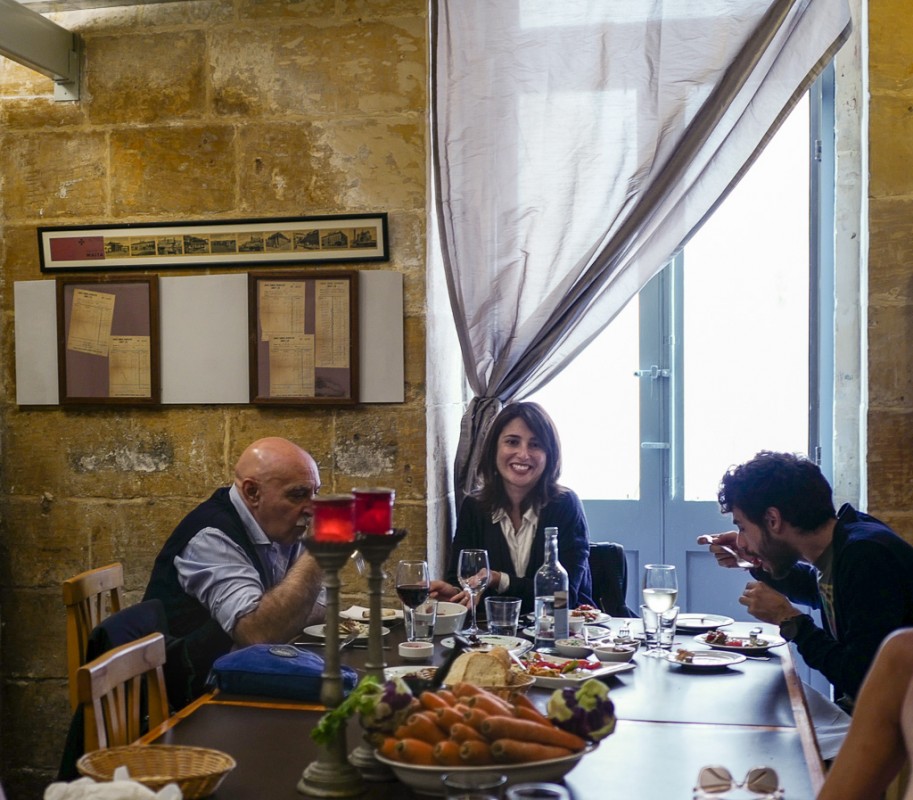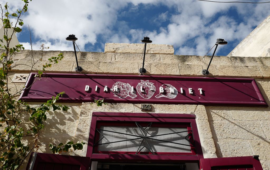 Diar-il-Bniet er neste stopp. Restauranten ligger i Dingli. Familien har egen gård der de dyrker grønnsaker og holder dyr. Oppskriftene som brukes i restauranten er bestemor sine. Hun døde i 2006. Nå er det sønnen og barnebarna som driver stedet i bestemors ånd. Dette er en ekte Farm to Table-restaurant. Du kan også kjøpe grønnsaker og fine ting på glass. Produktene selges også i delikatessebutikker enkelte steder på Malta.