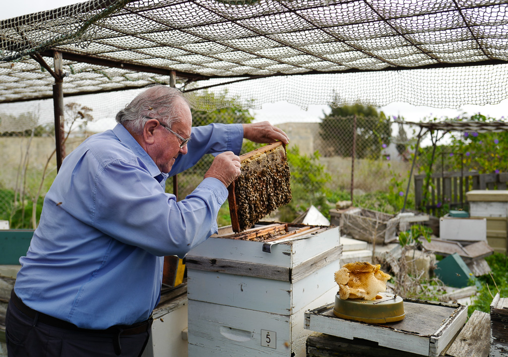 Arnold Grech har 200 bikuber. Han er 80 år og har jobbet som birøkter i 64 av dem. Han er dårlig til bens, men det er ingenting å si på humøret. Han vitser hele tiden. Men det er en ting han ikke ler bort.