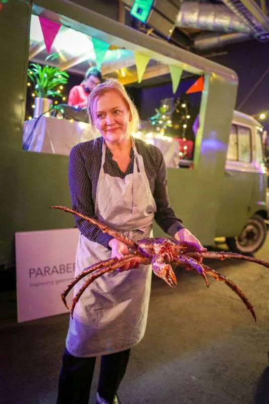 På Vippa ble vi tatt i mot under en portal av tørrfiskhjell fra Røst. Gjestene kunne banke tørrfisk og ikke minst nyte det beste av det beste som Norge har å by på av deilig, bærekraftig sjømat. Jeg har aldri i mitt liv sett så mye deilig. Jeg elsker sjømat, og her var jeg som et barn i en godtebutikk. Krabbeklør på størrelse som en menneskehånd, f.eks.