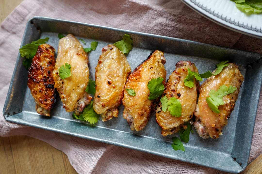 Jeg kan ikke styre meg når det kommer til kyllingvinger. Jeg synes det er så godt! Det eneste jeg gjør er å salte og pepre vingene og så griller jeg dem i grillkurv. Ved å bruke en slik kurv kan jeg lett riste på vingene uten at de faller ned mellom sprekkene i grillristen. Vingene griller jeg også på indirekte varme for jeg vil at kjøttet skal fallet av beinet lett når jeg biter inn i vingen. Skinnet blir deilig og sprøtt så lenge du husker å grille indirekte med lokket på.