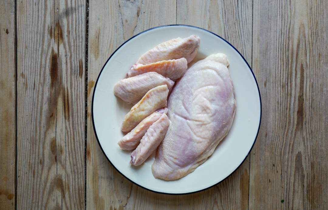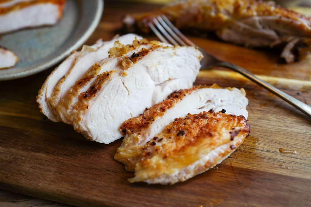 Ikke steketermometer? Følg godt med. Kyllingbrystet har en liten «flapp» av kjøtt under fileten. Sjekk hvordan fargen er mellom fileten og «flappen». Er den gjennomstekt (altså hvit og ikke lyserosa og «gjennomsiktig» er du på god vei. Skjær så et lite snitt i fileten ved «flappen» og se om kjøttet er ferdig.