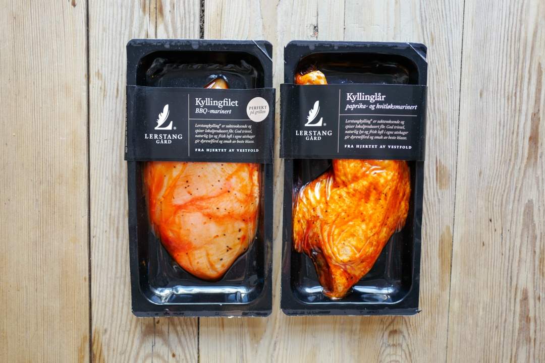 Jeg har grillet nyhetene BBQ-marinert kyllingbryst og paprika- og hvitløksmarinert kyllinglår. Men jeg har også grillet helt vanlig kyllingbryst med skinn samt kyllingvinger. Alle produktene er selvsagt fra Lerstang.