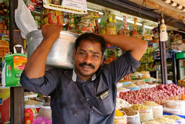 Markedet ligger plassert midt mellom en kirke, et hindutempel og en moské. Her lever religionene side om side med et kommunistisk styre. Høres ut som en selvmotsigelse, men det er helt sant.