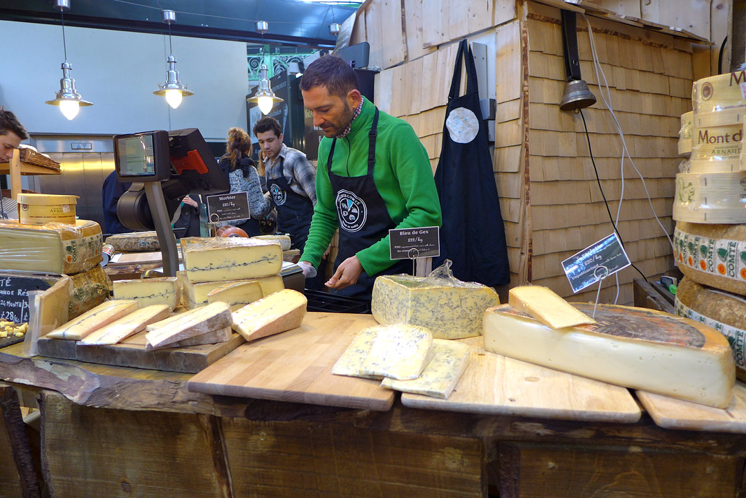 En av mange osteutsalg på markedet.Mange steder å spise mat på markedsområdet.Her kan du sniffe trøffel og kjøpe med deg hjem.