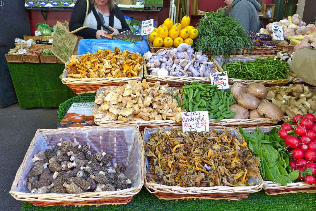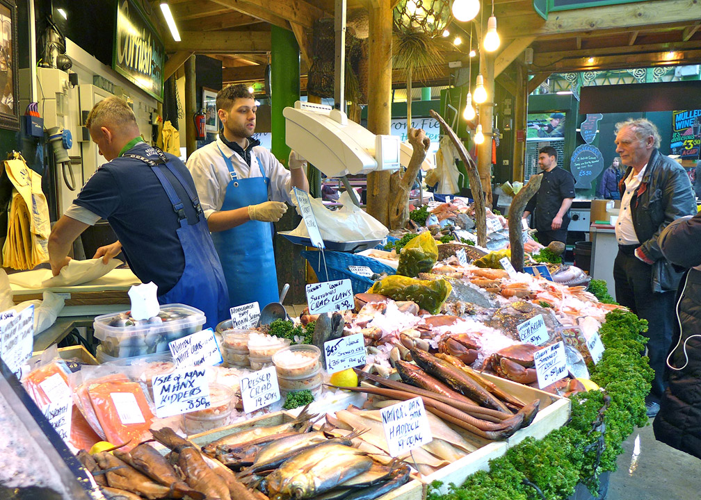 spennende engelsk saltFersk fisk.Fristende grønnsaker på fristende marked.Ferdiglagde retter til å ta med seg hjem.Her vil ølinteresserte finne flasker de aldri har smakt før. Garantert!Pies. Et must.Noe å varme seg på. Da er gløgg tingen. Velg med eller uten alkohol.
