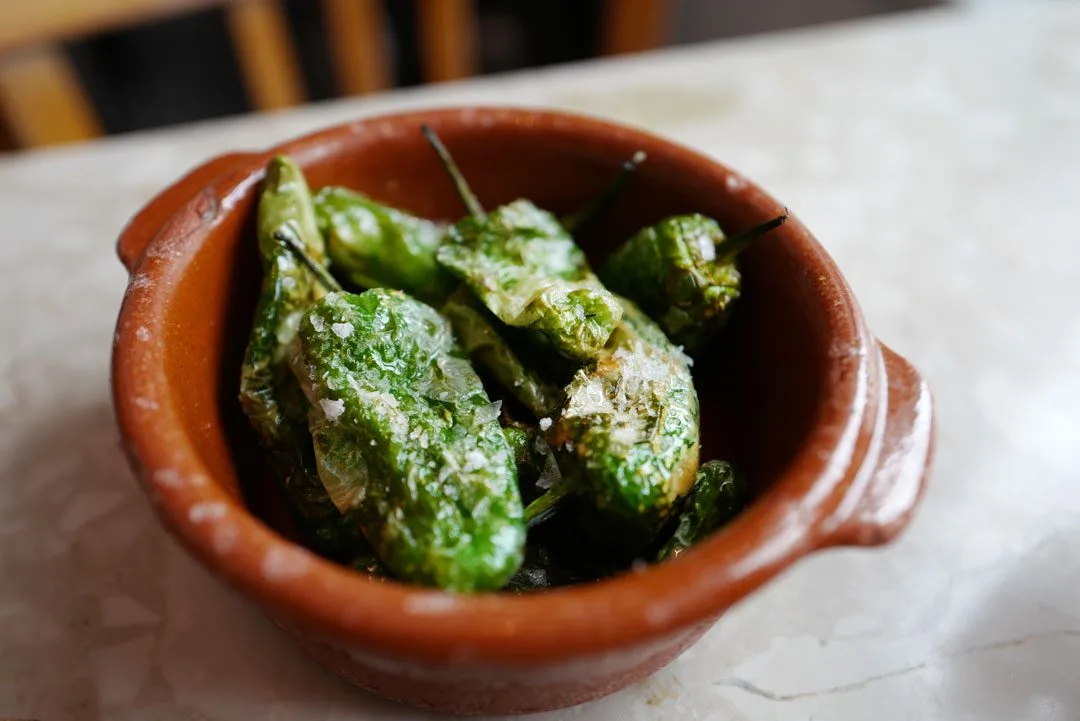Pimientos de Padrón hører med på et tapasbord. De får du kjøpt i mange grønnsaksbutikker i Norge. Juels 33 på Frogner i Oslo har de alltid inne.