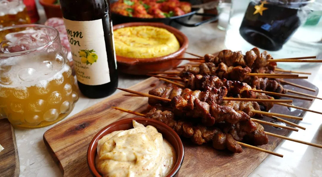 Første gang jeg var i Barcelona fikk jeg noen fantastiske grillspyd laget på svinekjøtt. De ble servert med en karrimajones. Jeg husker dem som om det var i går. De var helt fantastiske. Derfor lager jeg dem ofte. Jeg bruker nakkekoteletter. De er billige og kjøttet har akkurat den fettmengden som trengs for at grillspydene skal bli saftige og tørre. Slik lager du dem:
