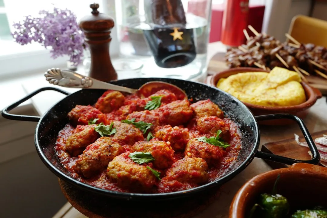 La meg starte med folkefavoritten albondigas. Dette er de deilige, luftige kjøttbollene som ligger i herlig tomatsaus. Denne kan du uten problemer lage dagen før.