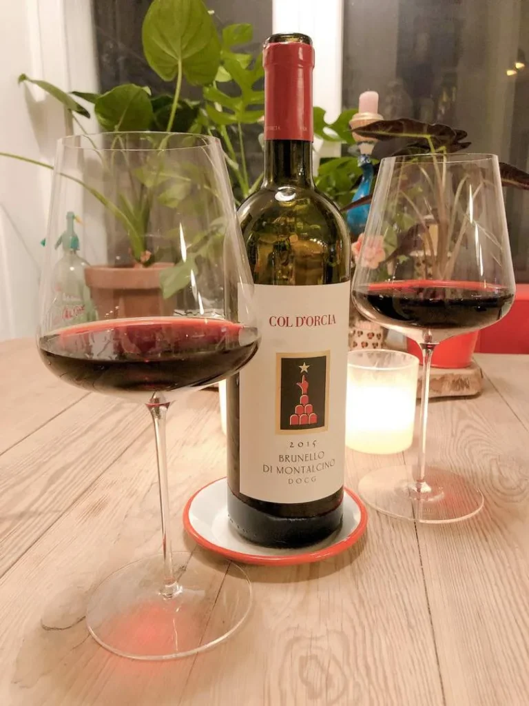 Vi gikk for en helt nydelig Brunello til lammet. Col d’Orcia Brunello di Montalcino 2016 var et fantastisk valg. Nydelig til maten og til kos etterpå.