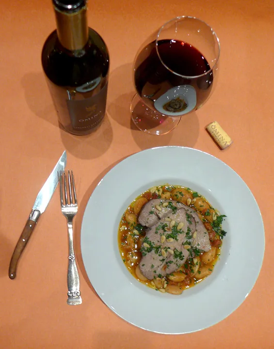 Serverte retten med en helt nydelig vin fra Italia: ômina Romana fra IGP Lazio Rosso, 100 % Cabernet Sauvignon. Den er ikketilgjengelig på Vinmonopolet ennå , men vi kan bare håpe at noen tar denne godbiten inn til Norge.