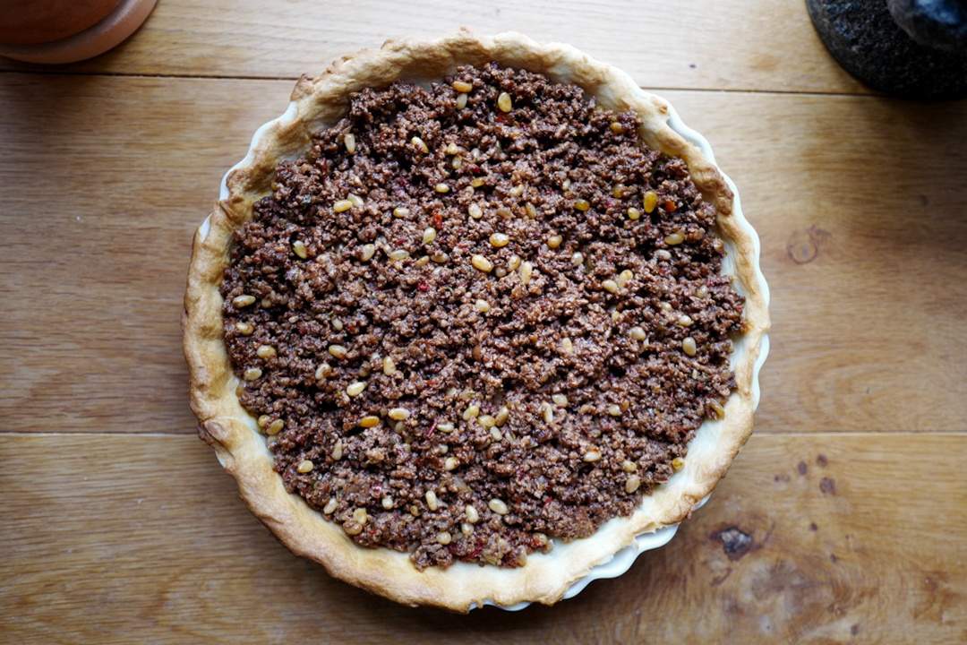 En rett som lages i Libanon er Sfeeha. Dette er små kjøttpaier med åpen topp. Jeg har laget en stor Sfeeha som jeg serverte til middag. Det fungerte bra, det!