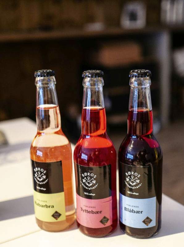 Men det er ikke bare øl som brygges i lokalene på Røros. Frank Norvik viser oss utvalget av perlende og alkoholfrie drikker laget på naturlige, håndplukkede ingredienser fra nærmiljøet som blåbær, rabarbra og tyttebær.