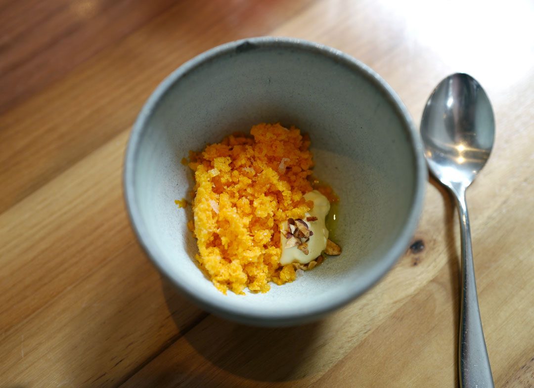 Vi bodde på Ace Hotel i Shoreditch og The Clove Club ligger i samme bydel på Londons østkant. Erik og jeg gikk innom og hørte om de tilfeldigvis hadde et ledig bord, og det hadde de, gitt. Neste dag var vi velkomne til lunsj.