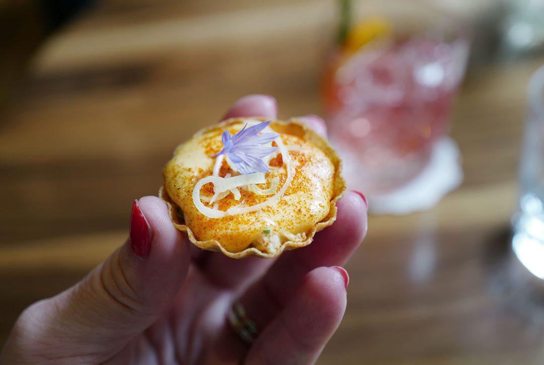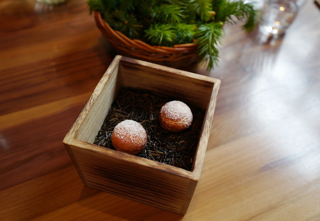 Oh lykke! Vi får et stjernebord og vi tar en cocktail til å starte med. Vi går for en 9-retters meny med småsnacks. akkurat passe til lunsj det, vel.