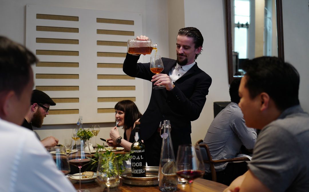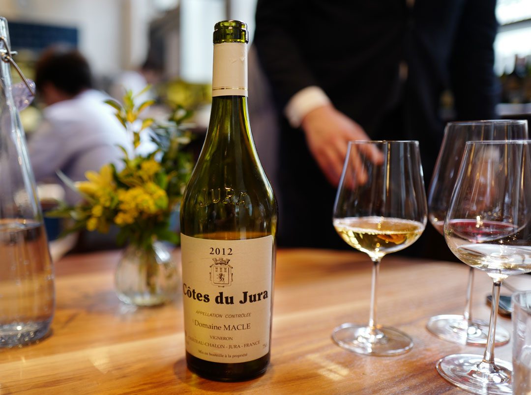 2016 Fugazi Grenache, Ochoa Barrels, McLaren ValeOk. Nå kommer madeiraen på bordet som er over 100 år gammelLitt madeira i glasset, så consomméen fra himmelen.Duck, Morel & Ginger Consommé2012 Cotes du Jura, Domaine Macle, JuraSlow roasted Lincolnshire Chicken, Creamed Potato, Ramson & Shiitake. Dette er ekte kylling, dere!