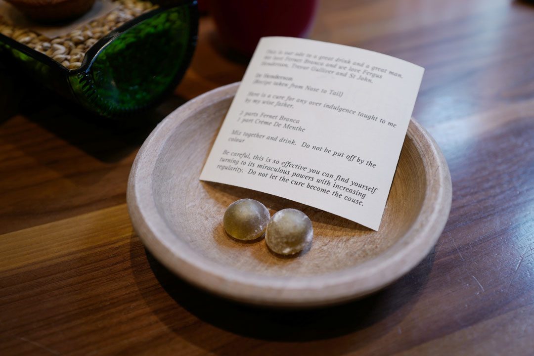 2014 Jurancon, Clos Thou, South West FranceLoquat Sorbet, Loquat Kernel Cream & Puffed AmaranthKaker til kaffen. Seated Barley Cake & Dundee Marmalade Cream. Endte opp med å kjøpe med en slik kaffekanne fra en butikk i Shoreditch. Så fin!Dr. Henderson’s Bon Bon med smak av bitter.Salted Caramel Chocolate i forgrunnen.