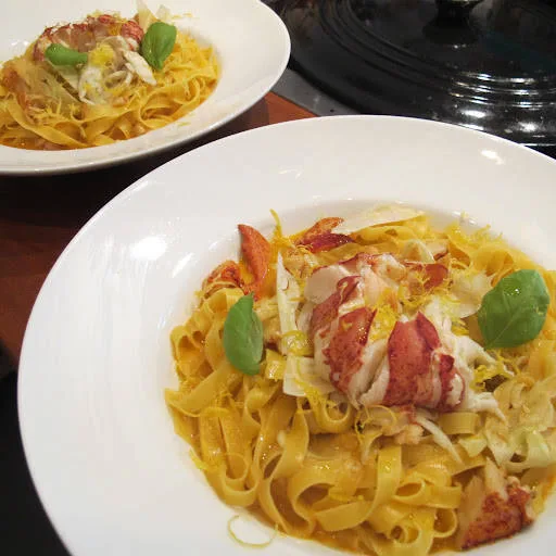 Bland hummerkjøttet (som du deler i passende biter) i sausen sammen 1/2 finstrimlet fenikkel. Bland forsiktig i pastaen. Hummerhalene deler du pent opp og legger på toppen av pastaretten til slutt. Strø over litt god olivenolje og revet sitronskall. Basilikumblader er pent tilbehør.