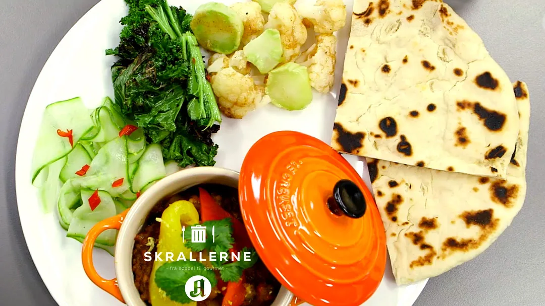 Du følger vel med på «Skrallerne»? Dette er Aftenposten-tv sin satsing denne høsten om temaet matspill. Du møter fire «skrallere», (altså personer som finner mat i søpla som er fullt spiselig) og fire matbloggere. Jeg er med i serien, og i kveldens episode skal jeg konkurrere sammen min makker Børge om å lage den beste maten ut fra det vi fant i søplekassene. På motsatt lag finner du den kjente matbloggeren Fru Timian og makkeren hennes.
