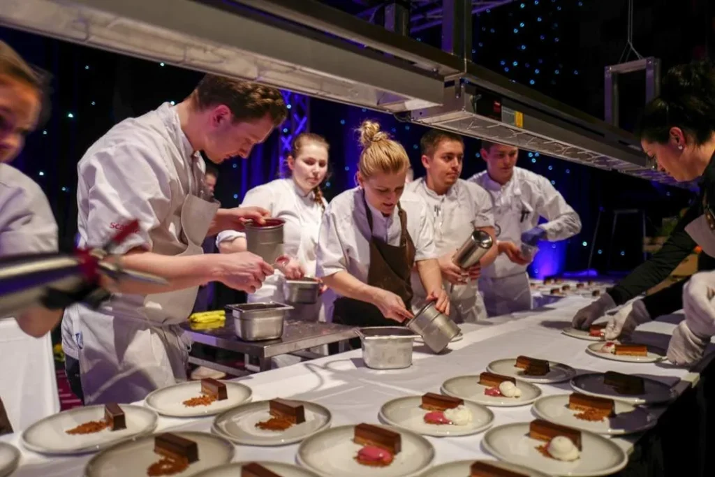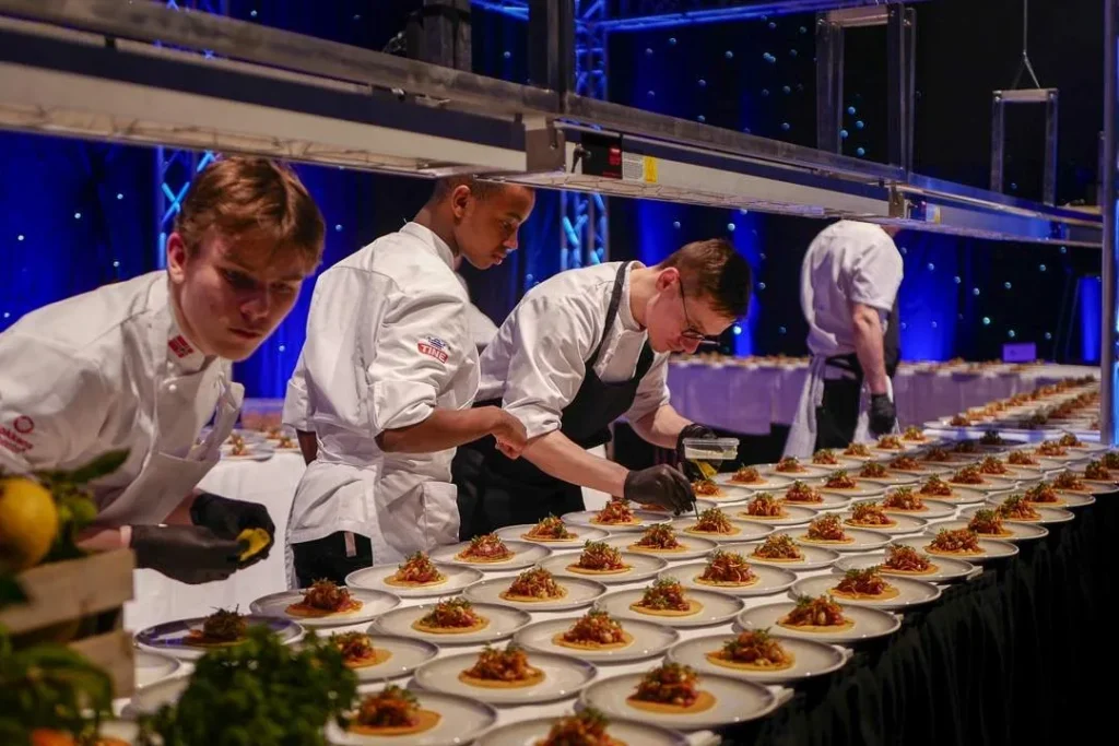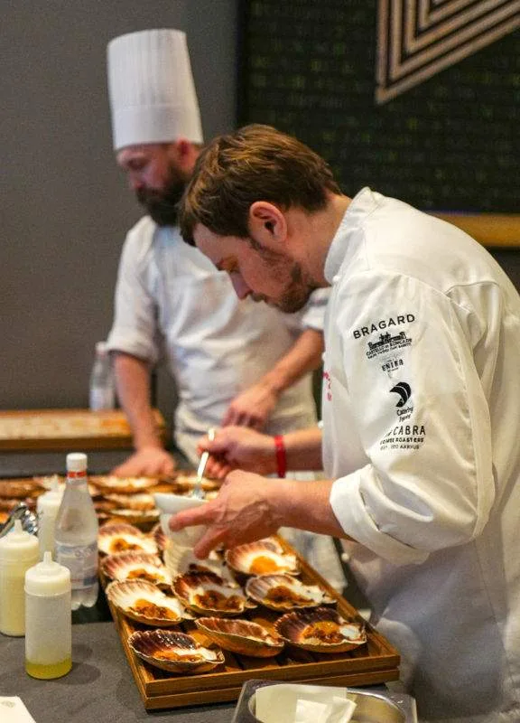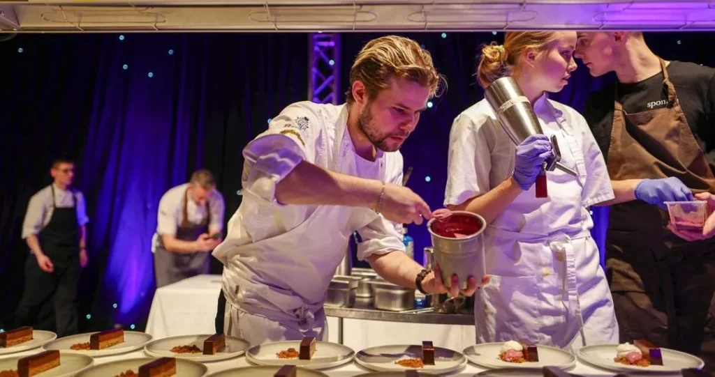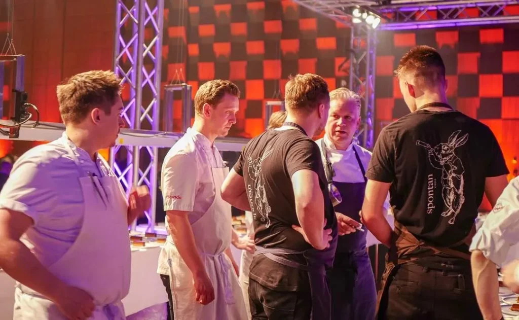 Etter utdelingen i Olavshallen var det klart for fest og hornmusikk på Britannia Hotel som hadde forvandlet æreverdige Palmehaven til en kulinarisk oase. Den kjente fontenen var nå fylt med is og kald øl. Overalt var det fristende mat signert kjente kokker som Jonas Nåvik fra Fagn og Nicolai Nørregaard fra Kadeau i København.