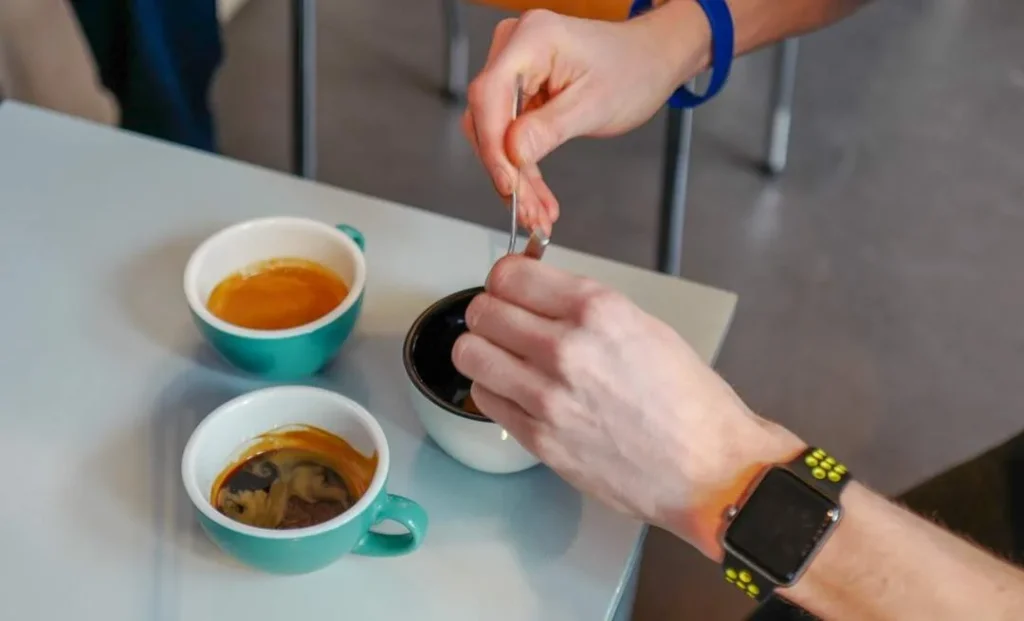 Vi lærte også at det er smart å fjerne skumlaget på toppen når du lager presskannekaffe for der ligger urenheter som gir bismak til kaffen. Det samme gjelder espressokoppen. Skummet på toppen, som jeg liker godt, er også lurt å fjerne med skje for å få konsis smak på espressoen. Vi prøver og det er definitivt forskjell på smaken.
