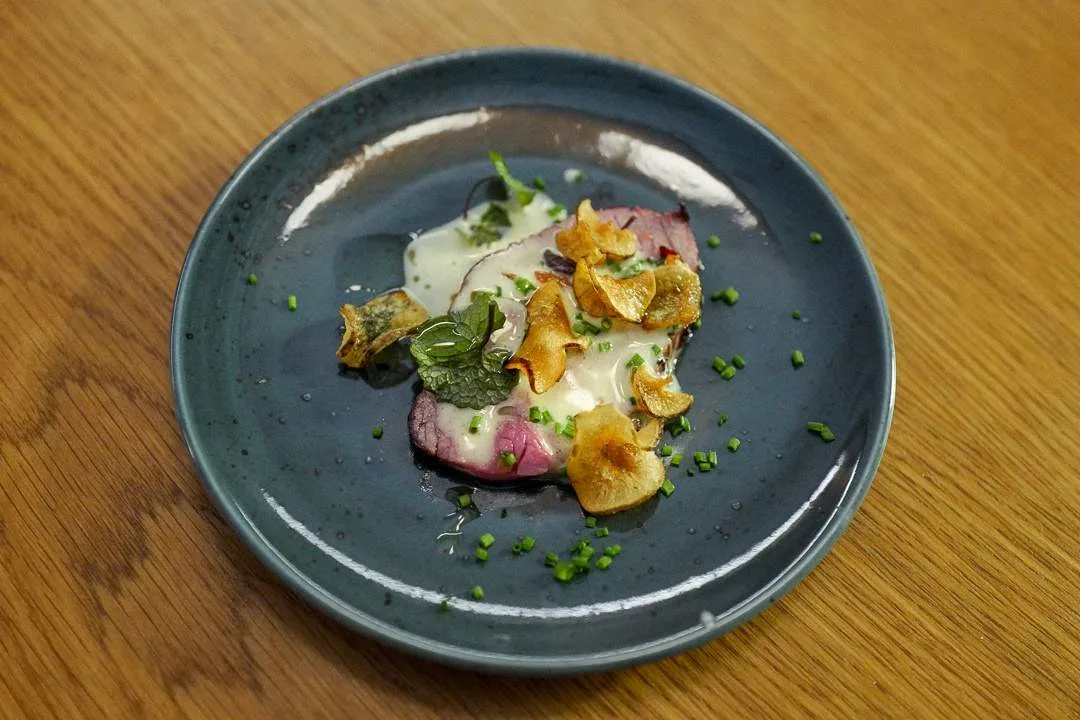 Fredric Klev, som har lang erfaring fra Credo i Trondheim og Fauna i Oslo serverer Lama (!) fra Verdal med jordskokk fra Hasselvika og bearnaise på SELLANRAA-måten.